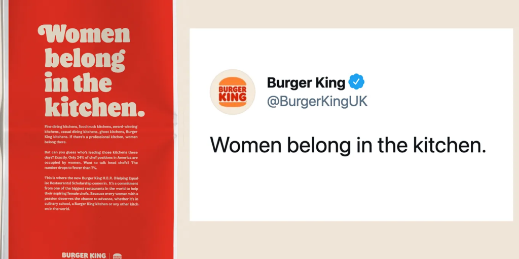 Burger King Women’s Day üçün bu cümlə ilə tweet atdı, sonra alt thread-də “amma biz qadın aşpazları dəstəkləyirik” izahını verdi.